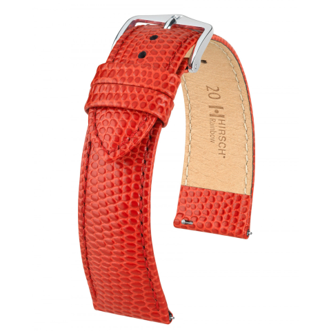 Az időtlen elegancia és az egzotikus domborítás teszi a Hirsch RAINBOW-t a klasszikus és nőies órák tökéletes kiegészítőjévé. A selymes, csillogó RAINBOW bőr óraszíj kiváló minőségű borjúbőrből készült. A különleges gyíkdomborítás és a szorosan fekvő, meg