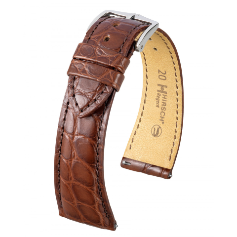 1 kép Hirsch Regent aligátor bőr óraszíj, sötétbarna, 20/16