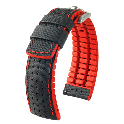 1 kép Hirsch Robby borjúbőr/kaucsk óraszíj, fekete/piros, 24/22