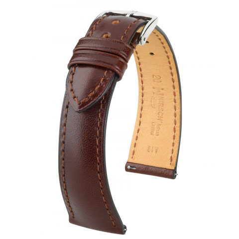 1 kép Hirsch Siena borjúbór óraszíj, sötétbarna, 19/16L