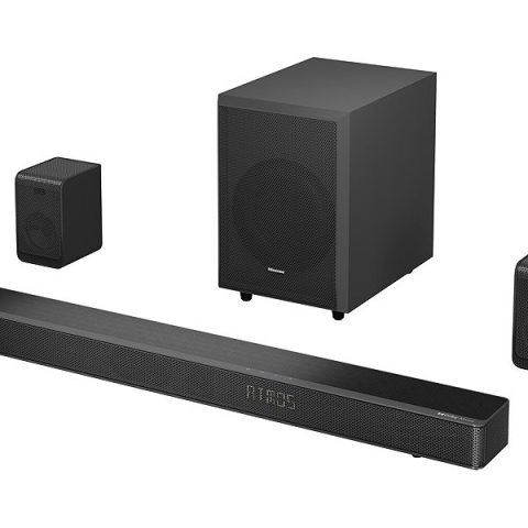 SoundBar - 5.1.2, 500 W összteljesítmény, aktív vezeték nélküli mélynyomó, HDMI (2× bemenet, 1× kimenet), optikai digitális audió (kimenet), 3,5 mm jack (1× bemenet, 1× kimenet), AUX, Bluetooth, USB, USB flash lejátszás, Dolby Atmos, Dolby Digital Plus, DTS: X, DTS Virtual X, kijelző, távirányító Hisense AX5125H soundBarPrémium soundbar Dolby Atmos és DTS: X támogatássalVezeték nélküli kialakítás, 420 W összteljesítménnyelÖsszesen 9 hangszóró Hisense dekódol