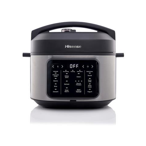 Multifunkciós főzőedény - választható funkciók gőzölés, főzés nyomás alatt, joghurtkészítés, lassú főzés és rizsfőzés, űrtartalma 6 l, a felszerelés része kijelző, kivehető edény, termosztát, időzítő, hőmérséklet megtartása és késleltetett indítás, 1500 W teljesítmény, kanál, mérőedény és fedő a csomag része, mérete 30 × 36 × 36,6 cm (Ma×Sz×H), fekete kivitel Hisense HMC6SBK multifunkciós főzőedényA Hisense HMC6SBK egy multifunkciós főz