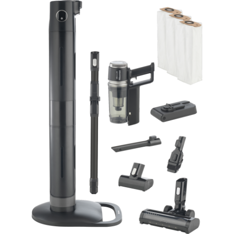 Álló porszívó - akkus, alkalmas szőnyeg, kárpit, linóleum, úszó padló és sima padlók tisztítására, száraz tisztítás, felszívás, Li-ion akkumulátor, működési idő 60 perc, töltési idő 5 óra, HEPA szűrő, 400 W teljesítmény, zajszint 80 dB, műanyag gyűjtőtartály 0,5 l űrtartalommal, vezérlés a készüléken, töltöttségjelző, LED kijelző, LED világítás, teljesítmény szabályozás, lehajtható markolat és padlókímélő kerekek, mérete 113 × 25 ×