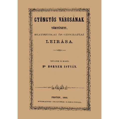 Horner István helytörténeti témája Gyöngyös első történeti leírása, mely a 19. század forrás és ismeretanyaga közepette készült.
