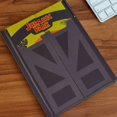 Hivatalos Jurassic Park termék Ezzel az A5-ös jegyzetfüzettel jegyezd meg mindazt, amit a természetben látsz. A borítót úgy tervezték, hogy úgy nézzen ki, mint a Jurassic Park bejárata, és mágneses zárral rendelkezik, amely úgy néz ki, mint a híres parkka