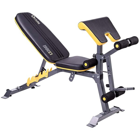 Edzőpad - kombinált, mellkas, has, hát és kar edzésére, csúszásgátló kezelés és állítható háttámla, a felszerelés része szállítógörgők, habszivacs henger és lábnyújtó és lábhajlító adapter, terhelhetősége 180 kg, mérete 122 × 56 × 165 cm (Ma×Sz×Mé), tömege 20 kg, sárga kivitel Az állítható HMS Premium LS3061 pad bicepsz támasztékkal és lábnyújtóval 7 pozícióba állítható háttámlával és 3 pozícióba állítható ülőrésszel rendelkezik