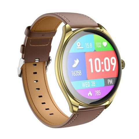 The elegant, waterproof Hoco Y22 smartwatch is perfect for work, home, travel or exercise. It has a color AMOLED screen, multi-sport modes, measures heart rate and saturation and monitors sleep. It allows you to make calls, manage connections, browse