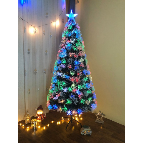 A Hoff mesterséges száloptikai fa 225 RGB LED-del van felszerelve (220 LED a fán + 5 LED a csúcscsillagnál), és a teljes magassága 180 cm. Az RGB egy olyan színérzékelési modell, amely a vörös, zöld és kék alapszíneket különböző módon kombinálja a színek