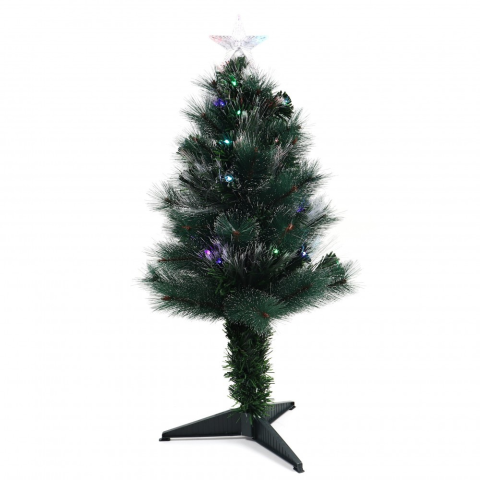 A műfenyő el van látva 41 színes LED-el és optikai szálakkal, a teljes magassága 90 cm. Ez a fa zöld, és készen áll arra, hogy a ház bármely helyiségében elhelyezhető legyen, mivel lámpákkal és a tetején egy csillaggal rendelkezik. A fém tartó zöldre van