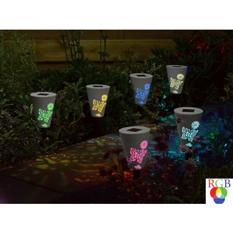 A Hoff pillangó mintázatú napelemes lámpa ideális az udvarra, teraszra vagy kertbe. Mérete 7,5 x 34 cm és IP44 védettségi szintje, amely ellenáll a környezeti tényezőknek. Ha a lámpát legalább 6 órán keresztül kívül, napos helyeken helyezi el, a nape