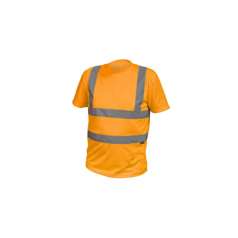 Jó láthatóság, narancssárga póló. Kiváló minőségű poliészterből készült, amely légáteresztő és kellemes tapintású. A laza fazon nem feszesíti a figurát és teljes mozgásszabadságot biztosít. A póló rövid ujjú és kerek nyakú (U-alakú). A póló 2 fényvisszave