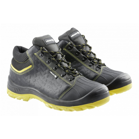 Férfi biztonsági bokacsizma az S1P biztonsági osztálynak megfelelően az ISO 20345:2011 szabvány szerint. A természetes bőrből készült cipők hozzájárulnak a kényelmes használathoz. A cipő acél orrvédővel van ellátva, amely védi a lábujjakat többek között a