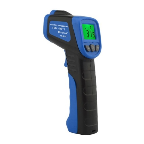 Infravörös hőmérsékletmérő Az infravörös hőmérséklet érzékelés segítségével érintés nélkül mérhető meg szilárd vagy folyékony tárgyak hőmérséklete. A pisztoly szerű kialakítás lehetővé teszi, hogy pontosan az adott terület hőmérsékletét tudjuk megmérni. A mérési eredményeket a jól látható LCD kijelzőről olvashatja le. - Infravörös hőmérsékletérzékelő lencse. - Távolság/tárgy optikai tényező: 8:1. - LCD kijelző. - Adattárolás, vis