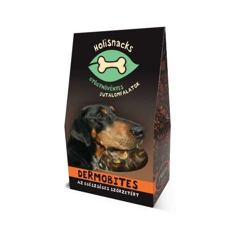 A HoliSnacks Dermobites bőrre, szemre, és szőrzetre ható gyógynövény összetétele, ekcémás viszketéses, szőrhullásos panaszok és problémák enyhítését és gyógyulását segíti elő. Az egészséges, fényes szőrzet és a látás egészségét serkenti.