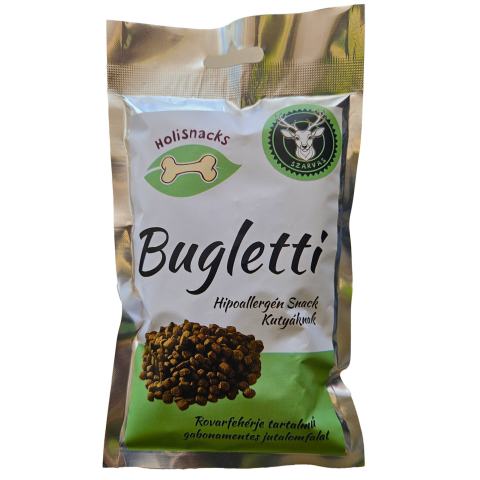 A Holisnacks Bugletti szarvasmájas hipoallergén snack egy különleges, rovarfehérjés jutalomfalat, amit azoknak a kutyáknak fejlesztettek, akik érzékenyek a hagyományos fehérjékre, mint a csirke vagy a marha.