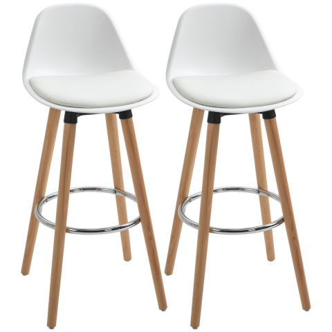 1 kép HomCom 2 darabos bárszék szett – fehér, háttámlával és párnával a kényelemért