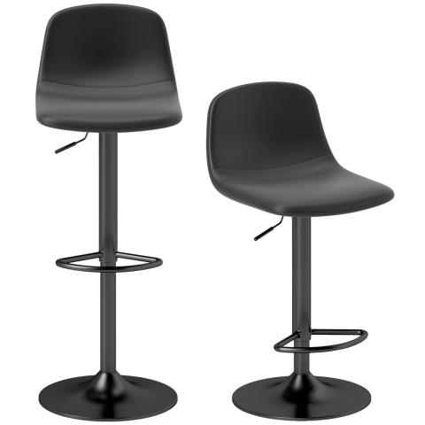 1 kép HomCom 2 darabos bárszék szett háttámlával és állítható magassággal, fekete műbőrből