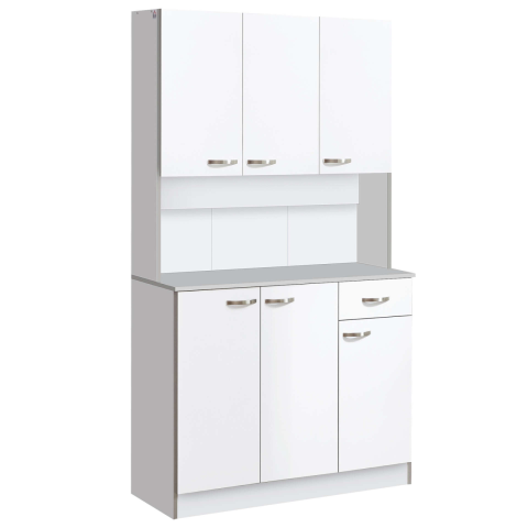 HomCom Aosom Konyhaszekrény 6 ajtó +1 fiók, fehér-szürke, 101x39x180 cm bútor termékleírás