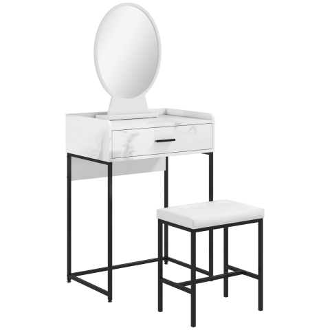 HOMCOM Fehér Fésülködőasztal Szett Tükörrel és Párnázott Székkel - Elegáns Kényelem a Szépítkezéshez 💄 Varázsold a mindennapi szépítkezést különleges élménnyé ezzel a stílusos HOMCOM fésülködőasztal szettel! A szett tartalmaz egy állítható ovális tük...