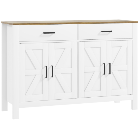 1 kép HomCom Konyhai tálalószekrény 2 fiókkal és 2 szekrényel, 120x39,3x82,5 cm, Fehér