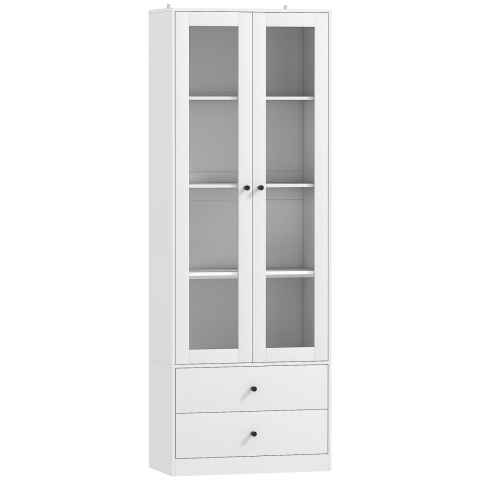 1 kép HomCom Konyhaszekrény üvegajtókkal, 2 fiókkal és állítható polcokkal, fehér
