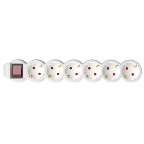 Az NV 6K-5/WH/1,5 Kapcsolós hálózati elosztó 6 db aljzattal ellátott, melyet egy fő kapcsolóval áramtalanítani tud. A biztonságos használat érdekében IP 20 védelemmel és gyermekvédelemmel ellátott. A fehér színű elosztó 5 m hosszú H05VV-F 3G1,5 mm2 kábell