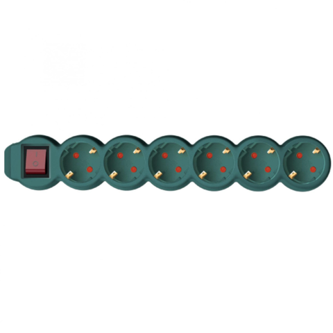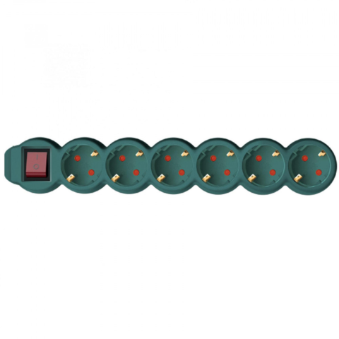 Az NV 6K-5/GR/1,5 Kapcsolós hálózati elosztó 6 db aljzattal ellátott, melyet egy fő kapcsolóval áramtalanítani tud. A biztonságos használat érdekében IP 20 védelemmel és gyermekvédelemmel ellátott. A zöld színű elosztó 5 m hosszú H05VV-F 3G1,5 mm2 kábelle