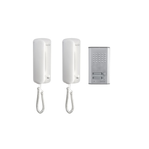 Rendkívül praktikus kétlakásos kaputelefonszett, amely két beltéri egységből és egy kültéri egységből áll. A termék lehetővé teszi, hogy két különböző lakásból fogadhassuk a látogatókat. A kapunyitó elektronika plusz tápellátás nélkül működtethető. A