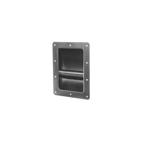 Home hangfal fogantyú, süllyesztett (HT 203). Fémből készült, fekete színű. 22 cm magas, 16,3 cm széles, 6 cm