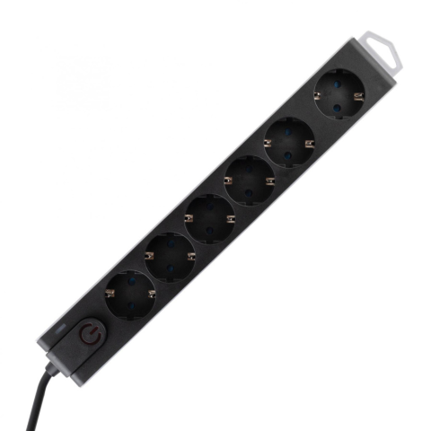 Home by Somogyi Túlfeszültségvédett elosztó, 6 aljzat, fekete, 3 m