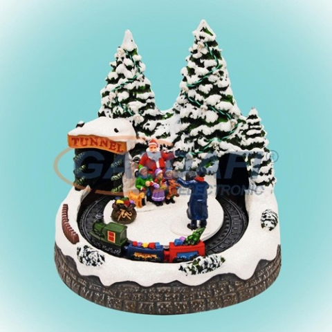 HOME DRM 8 LED-es karácsonyi életkép Mikulással és vonattal, színes fények DRM 8 Általános leírása: Ezt a beltéri kivitelű diorámát színes LED-ek és egy villogó fehér vaku teszi igazán lenyűgözővé. Mindeközben egy körbejáró kisvonat szeli át a tájat, a