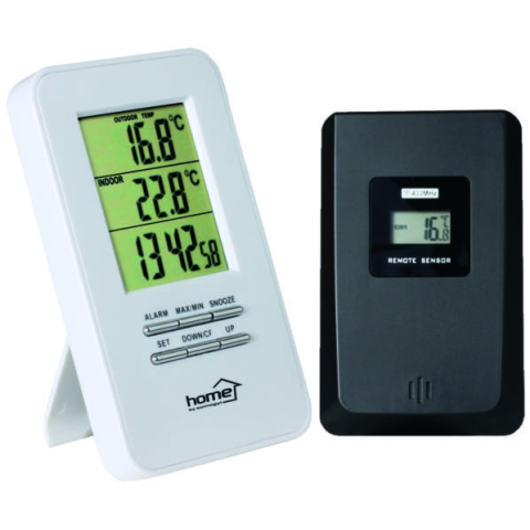 A Home vezeték nélküli külső-belső hőmérő (HC 11) a maximum és a minimum értékeket is kijelzi. A külső hőmérséklet jeladó működési frekvenciája 433,92 MHz, maximum 60 m hatótávolságban működik. Beltéri hőmérséklet kijelzés -9°C- +50°C, a kültéri hőmérséklet kijelzés -20°C- +60°C. Elhelyezhető állítva asztalra vagy falra akasztva egyaránt. A külső jeladó mérete 60 mm széles, 96 mm magas és 26 mm hosszú, beltéri egység mérete 73 mm széles,