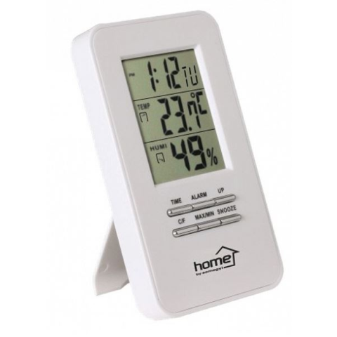 Beltéri hőmérséklet kijelzése (-9 - +50 °C) Beltéri páratartalom kijelzése (RH 20% - 90%) Maximum és minimum értékek kijelzése 12/24 órás időformátum, dátum, a hét napja Ébresztés szundi funkcióval (8 perc) Falra akasztható vagy asztallapra helyezhető Mérete (sz x m x h): 73 x 123 x 22 mm Kijelző mérete: 41 x 53 mm Tápellátás 2 x 1,5 V (Aaa) elem (nem tartozék)