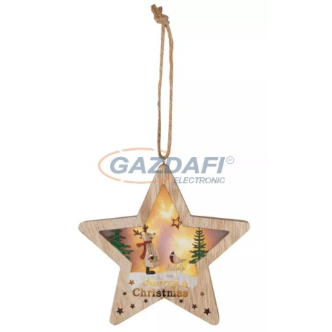 1 kép    Home KLW 17 R Fa ablak-, ajtódísz, csillag rénszarvassal, melegfehér LED