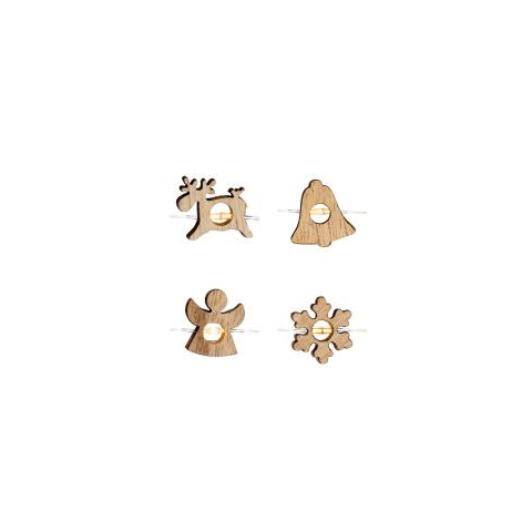 • 4-féle, fából készült figura: rénszarvas, harang, angyal, hópehely