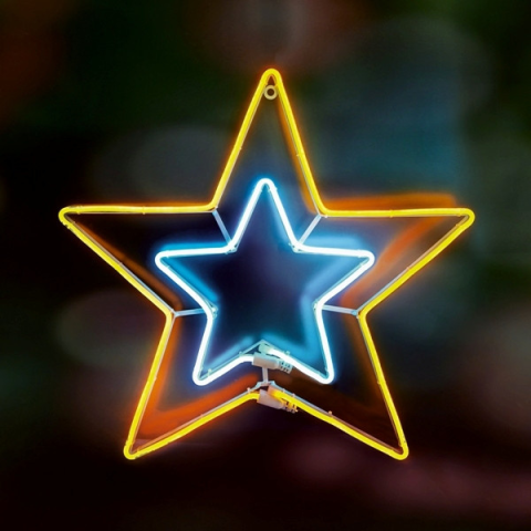Home NEON 3 LED-es neon light figura, csillag NEON 3 Általános leírása: A NEON 3 jégkék és napsárga fénye látványosan világít vagy akár villog, ráadásul mindkét oldalán, így tökéletesen megmutatja szépségét, bárhonnan is nézzük. Legyen az belső tér vagy