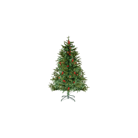 Varázsoljon meghitt ünnepi hangulatot otthonába, ezzel a klasszikus zöld műfenyővel! A sűrű ágrendszer és a dús, élethű tűlevelek és a piros bogyók természetes hatást keltenek, így tökéletes alternatívát nyújtanak az élő fenyő helyett. A tartós anyagból készült műfenyő hosszú éveken át megőrzi szépségét, miközben nem hullatja tűleveleit. A stabil szerkezet és az egyszerűen összeszerelhető elemek lehetővé teszik a könnyű felállítást, szétszere