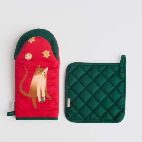Teljes HOME & YOU pamut edényfogó kesztyű és alátét, karácsonyi cica termékleírás