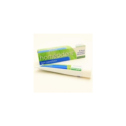 Homeodent fogfehérítő fogkrém klorofill 75 ml HOMEODENT FOGKRÉM KLOROFILOS FEHÉRÍTŐS. Mentolmentes, homeopátiás kezeléseknél kulönösen ajánlott. Összetétel körömvirág, utifű, vad torma, bűbájolt. Természetes módon védi és erősíti a fogínyt, nyugtató és