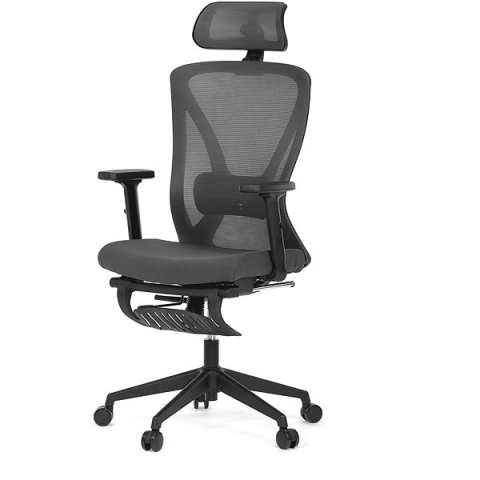 Irodaszék - forgó és ergonomikus szinkron mechanikával, terhelhetősége 120 kg, anatómiailag formázott ülőke állítható magassággal, deréktámasz, állítható magasságú fejtámla, állítható dőlésszögű háttámla, kartámasz állítható előre/hátra, függőlegesen, elforgatható felső résszel, lábtartóval, műanyag görgők, műanyag konstrukció, huzat anyaga textil és hálós anyag, lábak anyaga műanyag, szélessége 62 cm, a vevőnek kell összeszerelni, tömeg