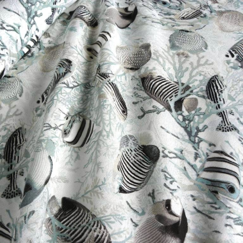 1 kép HomeTextiles AKVÁRIUM, türkiz-szürke halak mintás lakástextil dekorvászon