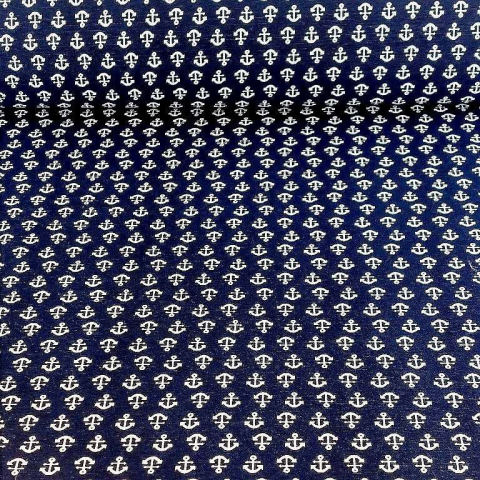 1 kép HomeTextiles ANKER, kis horgony mintás kék lakástextil, dekorvászon