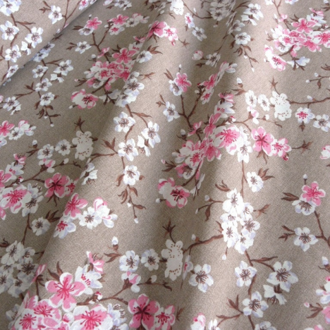 1 kép HomeTextiles MULAN, cseresznyevirág mintás lakástextil, dekorvászon - bézs-rózsaszín