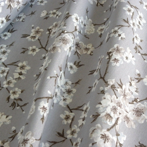 1 kép HomeTextiles MULAN, cseresznyevirág mintás lakástextil, dekorvászon - szürke