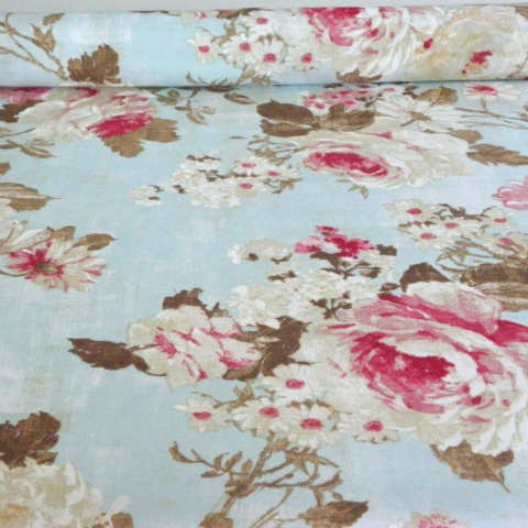1 kép HomeTextiles PEONIA, kék rózsamintás lakástextil, dekorvászon, 140 cm és 280 cm szélességben