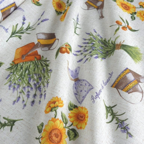 1 kép HomeTextiles PROVANCE, levendulás, napraforgó mintás lakástextil, dekorvászon