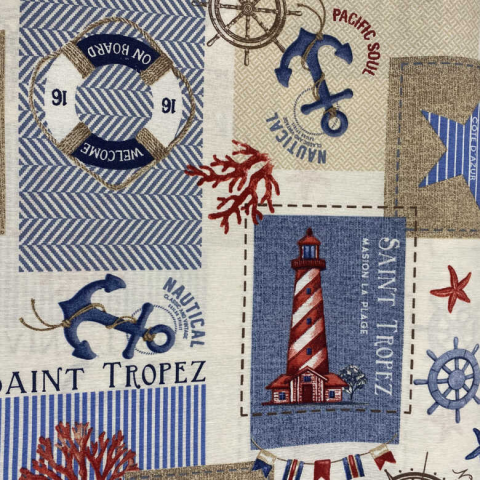 1 kép HomeTextiles SAINT TROPEZ, világítótorony mintás lakástextil dekorvászon