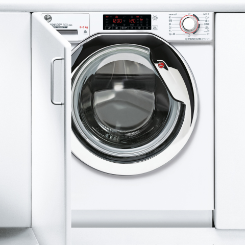 Beépíthető mosó- és szárítógép - elöltöltős, D energiaosztály, B centrifuga hatékonysági osztály, 8 kg maximális töltőkapacitás, 5 kg mosási és szárítási kapacitás, 266 kWh/100 ciklusonként energiafogyasztás (mosás és szárítás), 75 l vízfogyasztás ciklusonként, inverter motor, késleltetett indítás, gyorsprogram, kijelző és mosási program végét jelző hangjelzés, Antioverflow, 82 cm × 59,6 cm × 53 cm (ma×szé×mé), az első díszítőpanel az ajtó