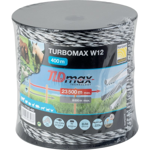 Az összes TURBOMAX szálnál a TLDmax vezetők maximális vezetőképességet és nagy szakítószilárdságot biztosítanak max vezeték száma: 12 darab max vezeték átmérője: 0,25 mm hossz (L): 400 m Max. ajánlott kerítéshossz (Akkumulátorral): 8000 m Max. ajánlott ke