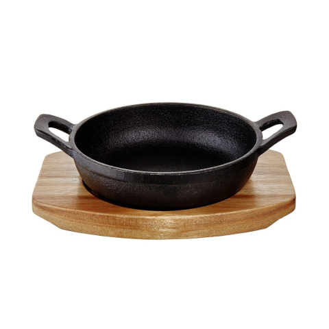 Teljes HOT IRON mini öntöttvas serpenyő fa alátéttel, 12 cm termékleírás